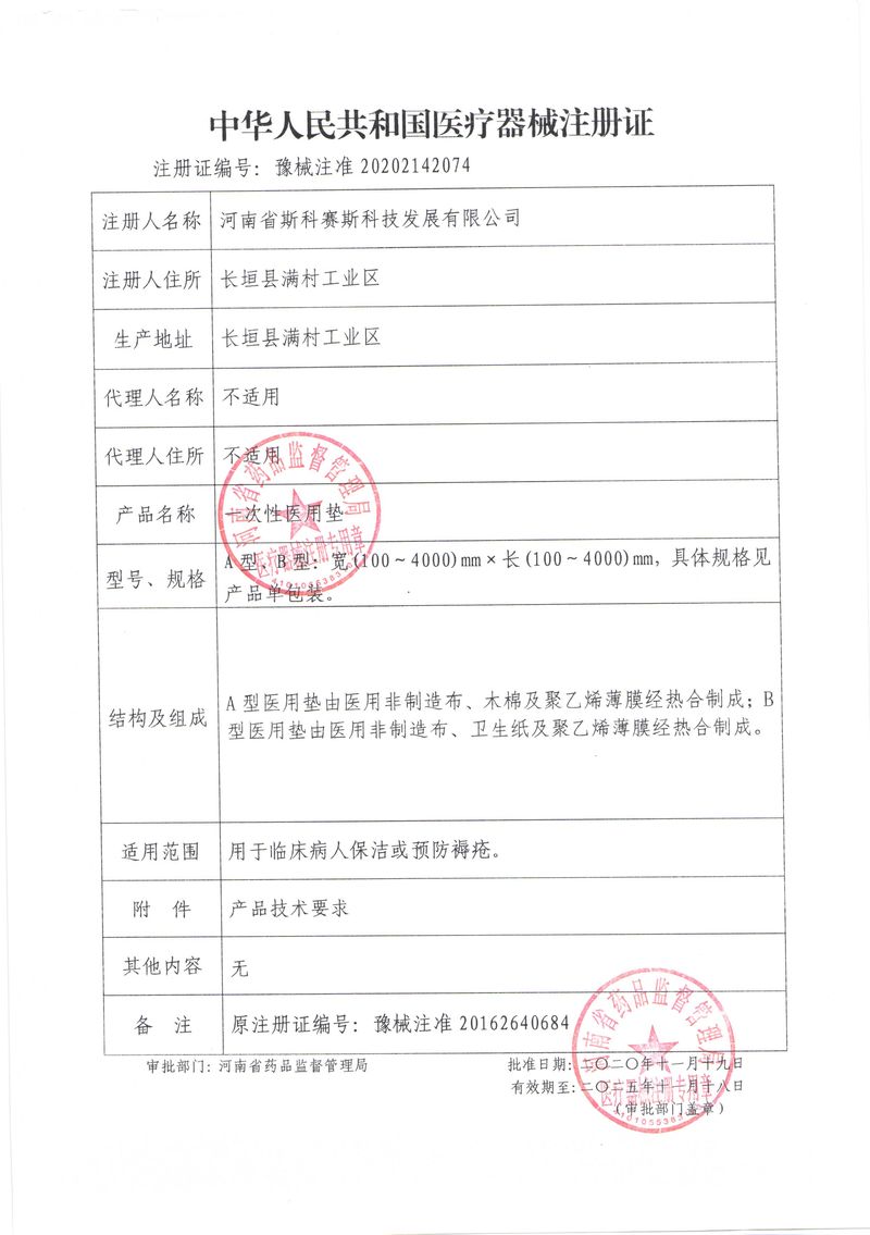 河南省斯科賽斯科技發(fā)展有限公司創(chuàng)建于 2011 年,位于“中國(guó)醫(yī)療耗材之都”- 河南省長(zhǎng)垣縣,西臨 308 省道,南靠新菏鐵路,北依長(zhǎng)濟(jì)高速,交通便捷,經(jīng)濟(jì)發(fā)達(dá),環(huán)境優(yōu)美。斯科賽斯積極進(jìn)入醫(yī)療健康和服務(wù)領(lǐng)域,秉承為用戶創(chuàng)造價(jià)值的理念,專注于醫(yī)用耗材解決方案的研發(fā)和運(yùn)營(yíng),并為用戶提供完善的產(chǎn)品解決方案;  斯科賽斯主要生產(chǎn)醫(yī)用麻醉系列、醫(yī)用高分子系列、醫(yī)用敷料包系列、醫(yī)用無(wú)紡布系列、醫(yī)用防護(hù)系列、醫(yī)用脫脂棉系列、生物材料制品類等七大類、100 多個(gè)品種、400 多個(gè)規(guī)格的產(chǎn)品。公司占地面積約 30000 平方米,建筑面積20000 平方米,擁有 10 萬(wàn)級(jí)的凈化車間總面積 10000 平方米。擁有國(guó)際先進(jìn)水平的生產(chǎn)設(shè)備和檢測(cè)儀器,技術(shù)裝備精良,檢測(cè)手段完善,為醫(yī)療行業(yè)的不斷發(fā)展進(jìn)步提供保障。公司順利通過 ISO9001、ISO13485 質(zhì)量管理體系認(rèn)證。  斯科賽斯堅(jiān)持研發(fā)高科技新產(chǎn)品,力爭(zhēng)在醫(yī)療器械關(guān)鍵領(lǐng)域取得技術(shù)和研發(fā)的重大突破;立足國(guó)內(nèi)和國(guó)際兩個(gè)市場(chǎng),逐步實(shí)現(xiàn)管理理念、經(jīng)營(yíng)機(jī)制、人力資源、技術(shù)、產(chǎn)品、市場(chǎng)等全方位對(duì)接,提高企業(yè)的核心競(jìng)爭(zhēng)力;過去的歲月里,斯科賽斯砥礪前行,誠(chéng)信務(wù)實(shí),銳意進(jìn)取,不斷創(chuàng)新,用自己的睿智和辛勞,以富有責(zé)任感的使命,在探索中追求,在追求中超越,致力于成為值得信賴的醫(yī)療用品生產(chǎn)企業(yè)!在未來的日子里,斯科賽斯將一如既往豪情滿懷,信心百倍,攜手并肩,執(zhí)著追求,向更高的的目標(biāo)前進(jìn),鑄造新的輝煌!